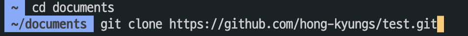 2.VScode(원하는 에디터)에서 터미널을 열고, 커멘드창에서 저장소를 내려받을 위치로 이동합니다. 필자는 documents 파일로 이동후 git clone 명령어를 통해서 저장소를 복제합니다.